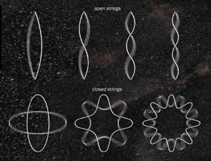 Open strings are one dimensional strings with two endpoints that can move and vibrate freely, giving rise to a variety of particle types depending on their vibration patterns, while closed strings are also one dimensional, but are loop like strings with no endpoints whose continuous, unbroken vibrations can produce particles such as the graviton and other closed-string excitations.